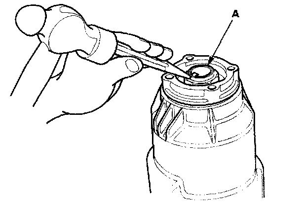 12. Stake the locknut tab (A) into the groove in the clutch guide.