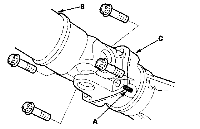 4. Make reference marks (A) across the propeller shaft (B) and the companion flanges (C).