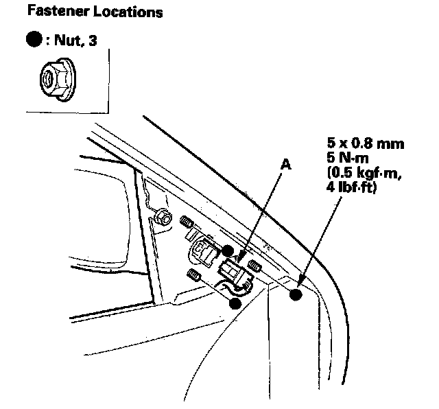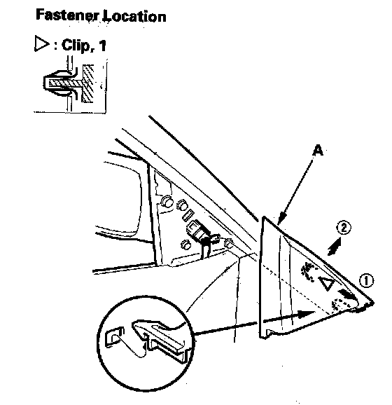 2. Carefully pry out the mirror mount cover (A) by hand in the sequence shown.