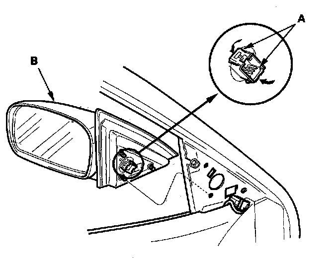 5. While holding the mirror/ push in on the connector clips (A), then push out to remove the mirror (B). Take care not to scratch the door.