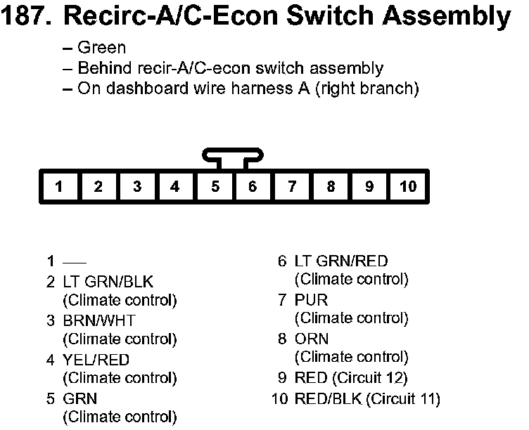 187. Recirc-A/C-Econ Switch Assembly: