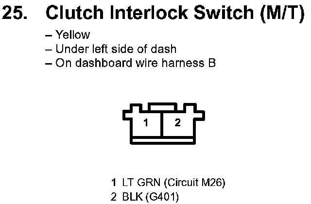 25. Clutch Interlock Switch (M/T):