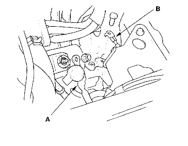 25. Remove the bolt (A) and nut (B) securing the A compressor.