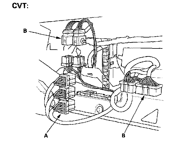 37. Connect the ECM connectors (A) and main wire harness connector (B).