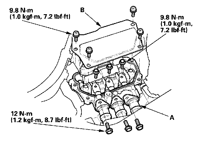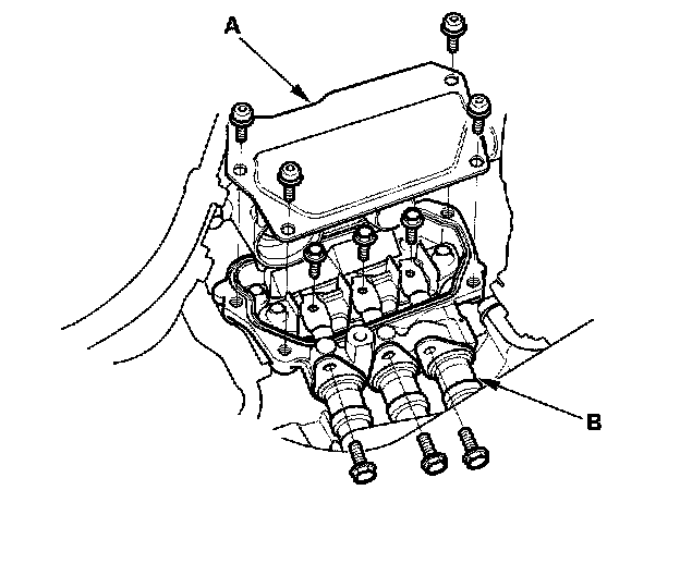 29. Apply liquid gasket, P/N 08718-0009, to the mating surfaces, then install the cover (B).