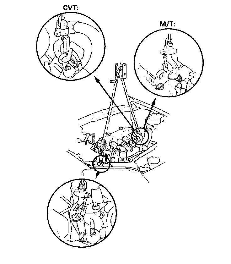32. Install the select cable and shift cable (M/T).