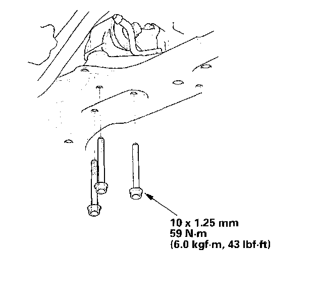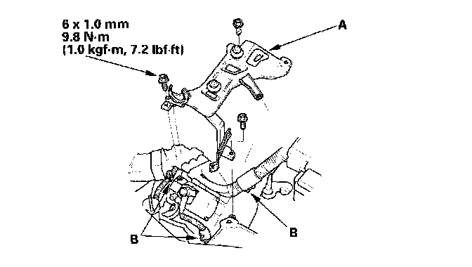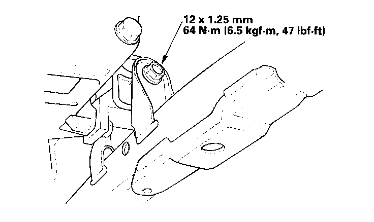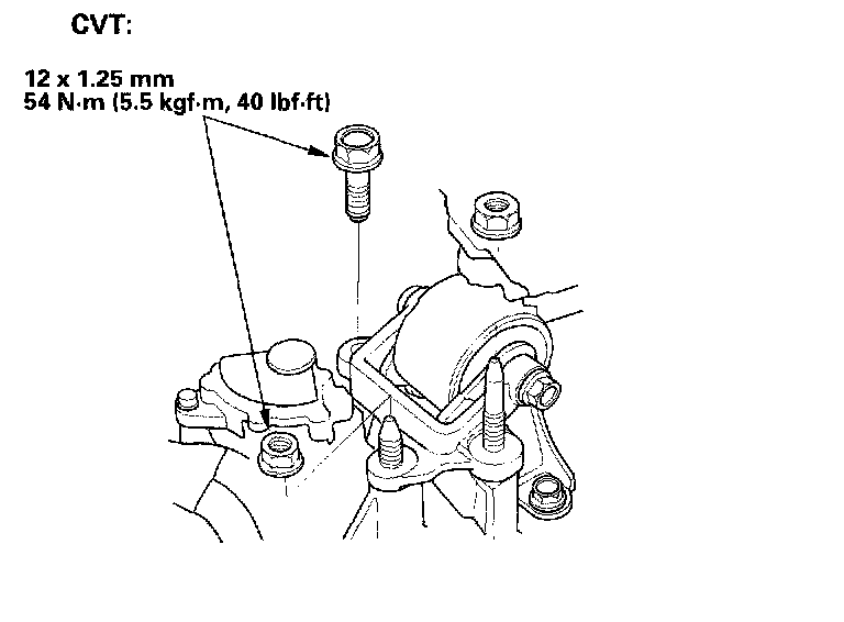 12. Tighten the transmission mount bracket support bolt and nuts.