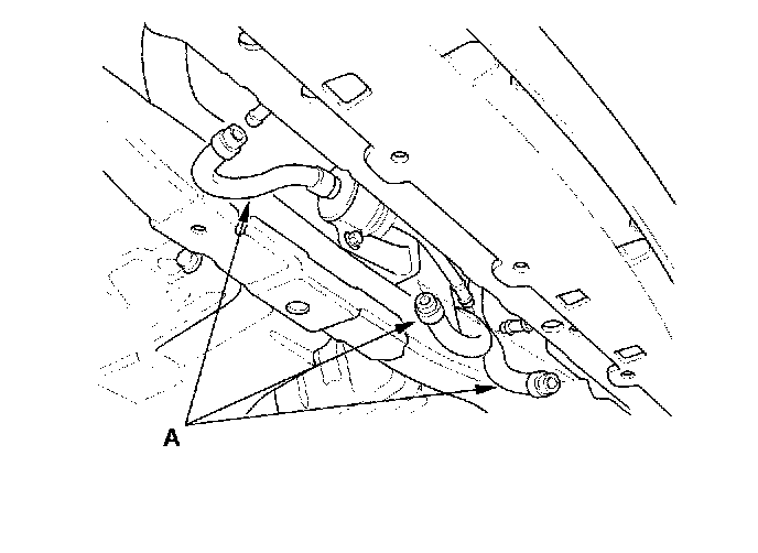 24. Install the automatic transmission fluid (ATF) cooler hoses (A) (CVT).