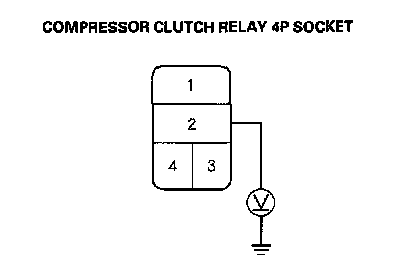 4. Measure the voltage between the No.2 terminal of the compressor clutch relay 4P socket and body ground.