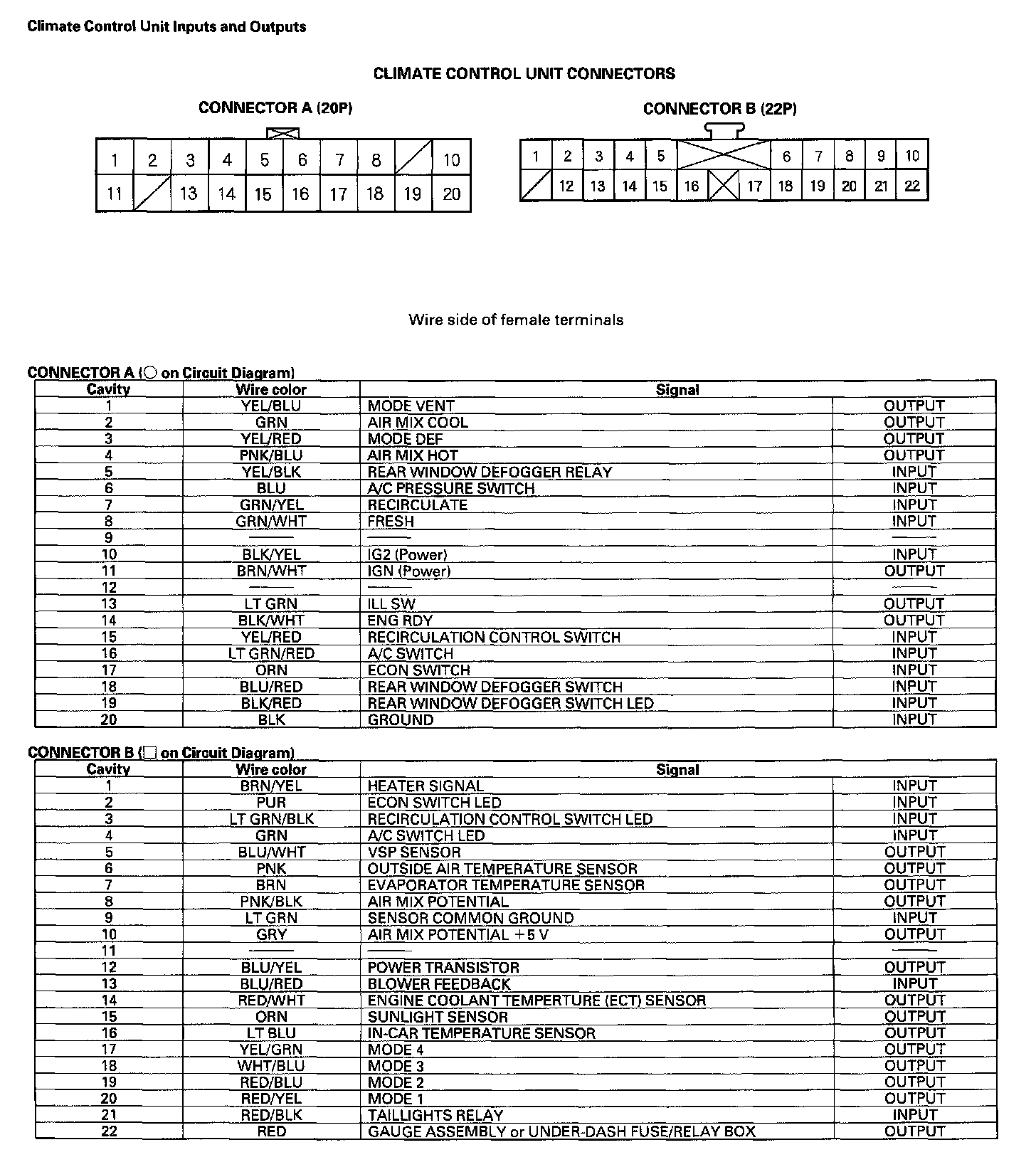 System DescriptionClimate Control Unit Inputs And Outputs: