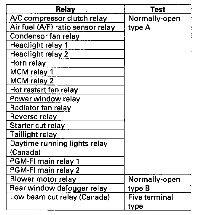 Power Relay TestUse this chart to identify the type of relay, then do the test listed for it.