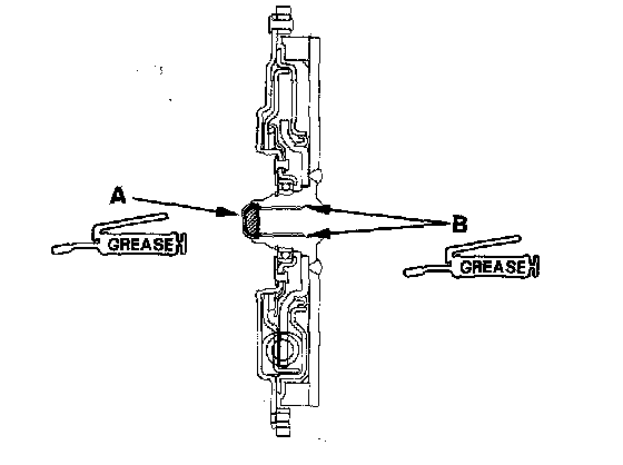 3. Fill the inside of the flywheel hub cap (A) and coat the flywheel hub splines (B) with about 1.5 to 2.5 grams (0.05 to 0.09 oz.) of Super High Temp Urea Grease (P/N 08798-9002). Do not overfill the flywheel hub cap with grease.