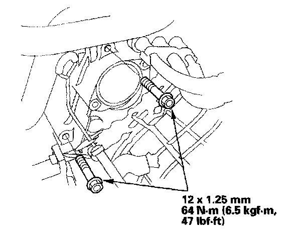 13. Attach the flywheel to the drive plate with six bolts. Rotate the crankshaft pulley to tighten the bolts to 1/2 of the specified torque, then to the final torque, in a cries-cross pattern. After tightening the last bolt, check that the crankshaft rotates freely.