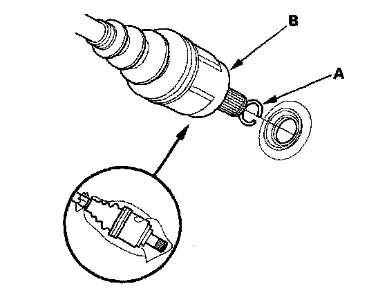 5. Install the new rubber sealing ring (A) on the input shaft (B).