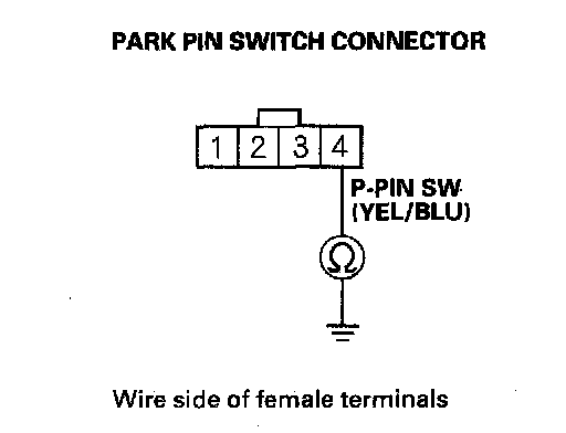 4. Check for continuity between park pin switch connector terminal No. 4 and body ground.