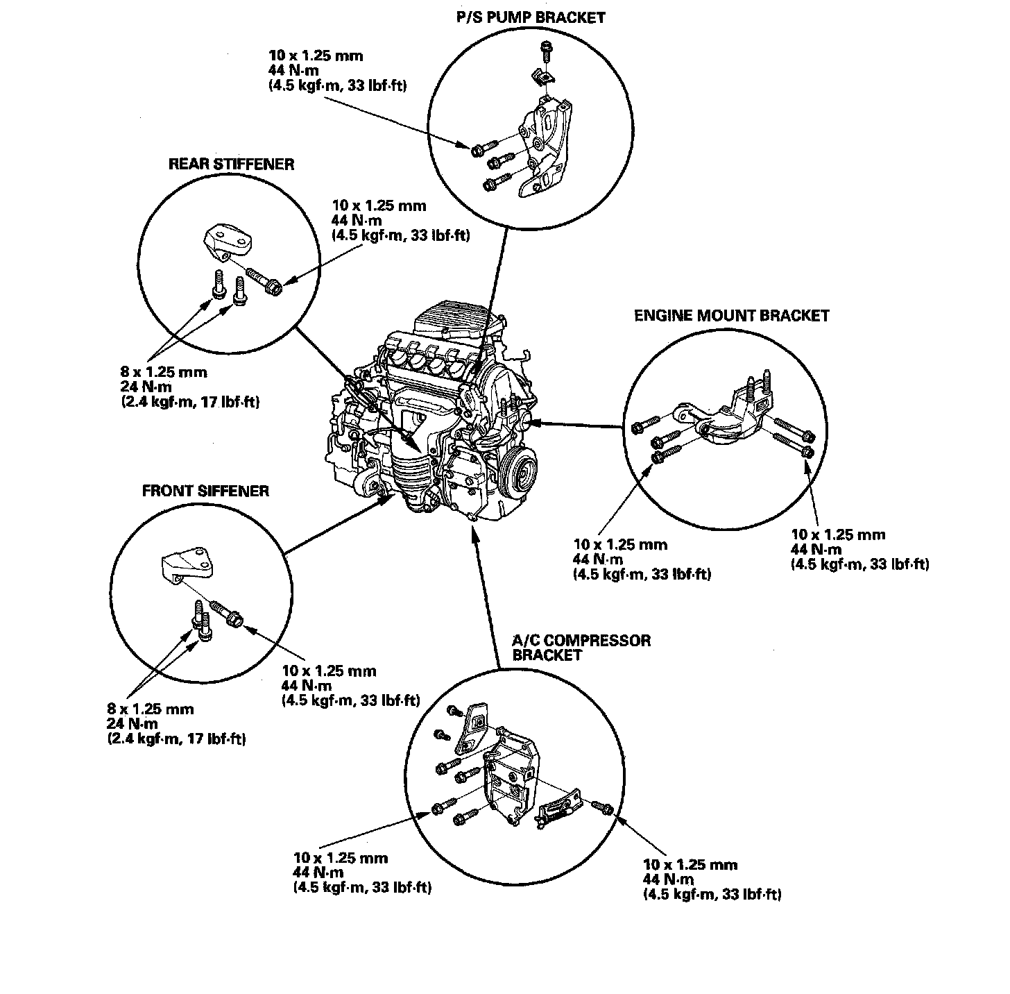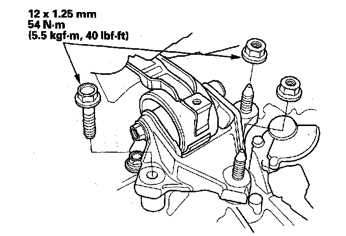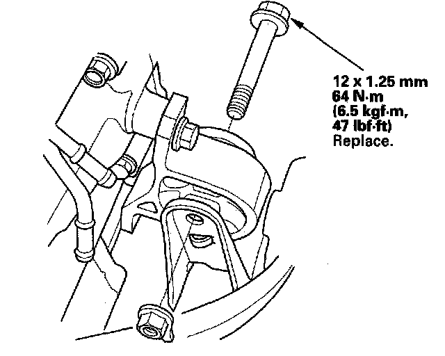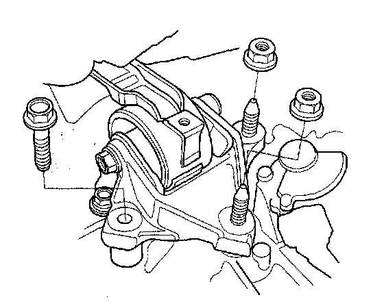7. Tighten the transmission mount bracket mounting bolt/nuts.