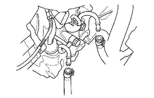 32. Remove the heater hoses (A), pressure regulator water inlet hose B (B), and pressure regulator water outlet hose B (C).