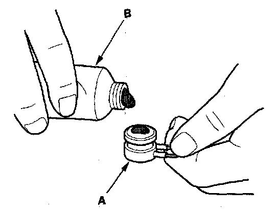 2. Replace the thermal protector (A) with a new one, and apply silicone sealant (B) to the bottom of the thermal protector.