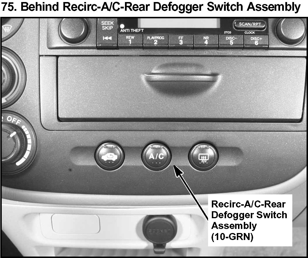 75. Behind Recirc-A/C-Rear Defogger Switch Assembly: