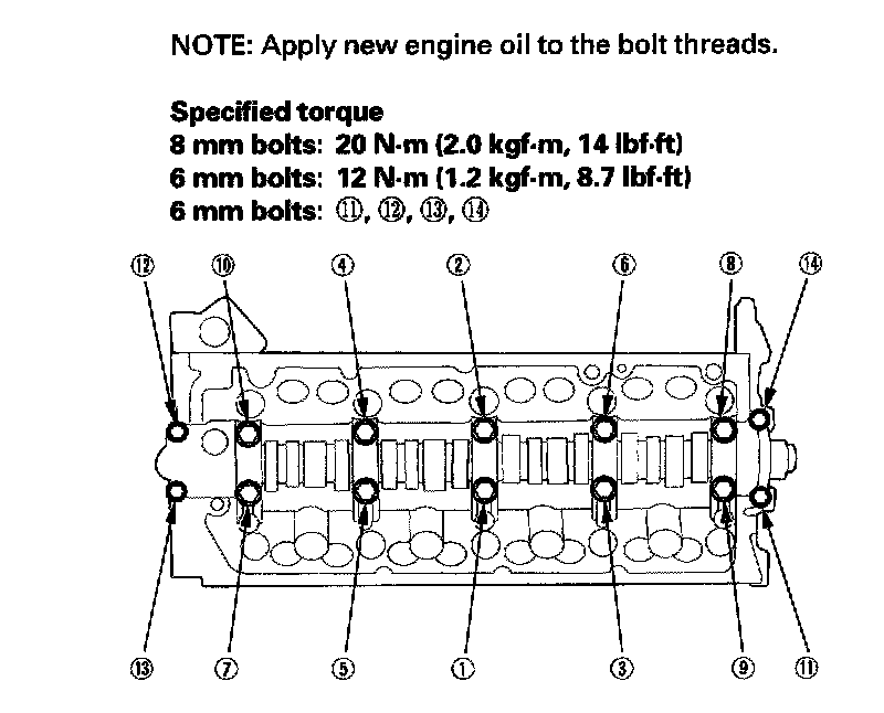 and the camshaft holders on the cylinder head, then tighten the bolts to the specified torque.