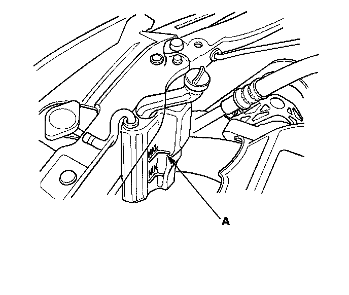 7. Fill the reserve tank to the MAX mark (A) with Honda All Season Antifreeze/Coolant Type 2 (P/N OL999-9001).
