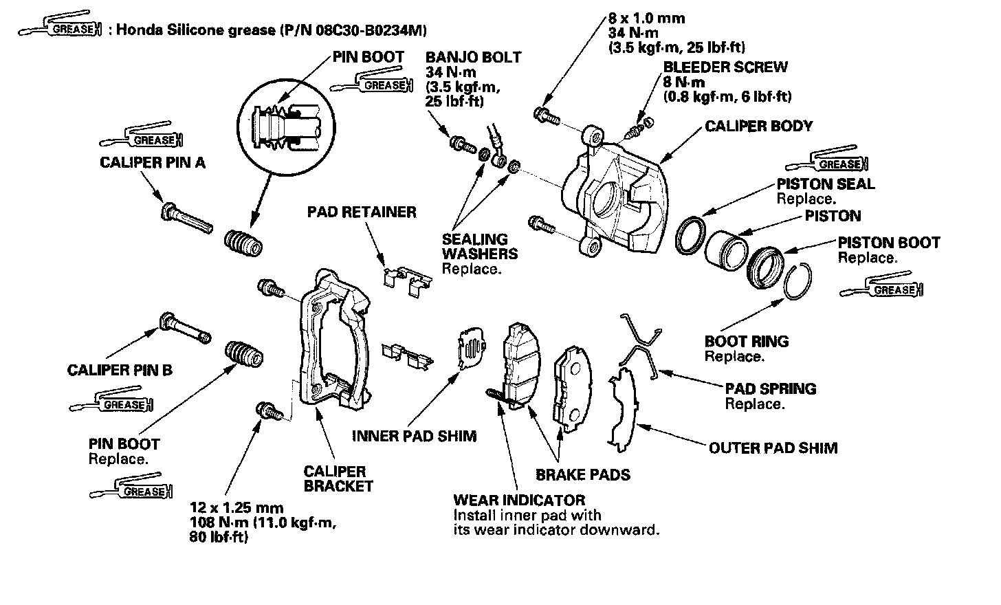Front Brake Caliper OverhaulCAUTION: Frequent inhalation of brake pad dust, regardless of material composition, could be hazardous to your health.