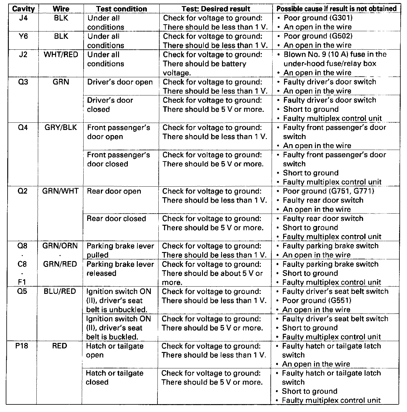 Multiplex Control Unit Input TestNOTE: Before continuing with the multiplex control unit input test, do the multiplex troubleshooting.