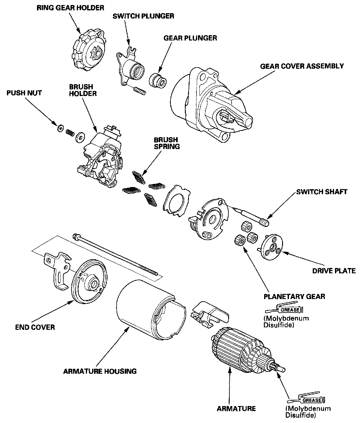 2. Disassemble the starter as shown at the beginning of this procedure.