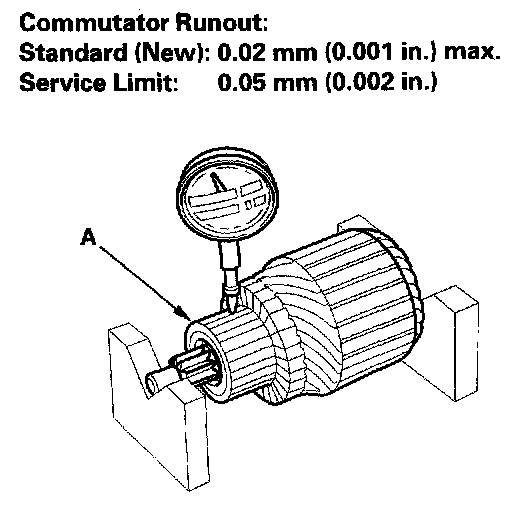 - If the commutator runout is not within the service limit, replace the armature.