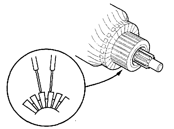 8. Check for continuity between the segments of the commutator. If an open circuit exists between any segments, replace the armature.