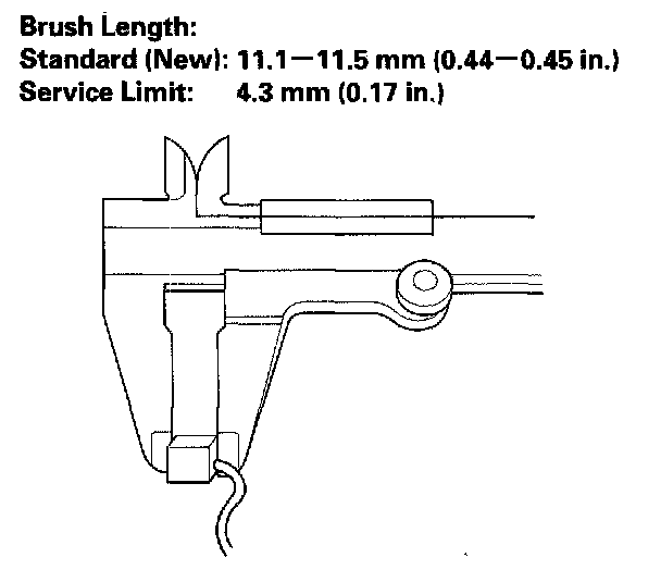11. Measure the brush length. If it is shorter than the service limit, replace the brush holder assembly.