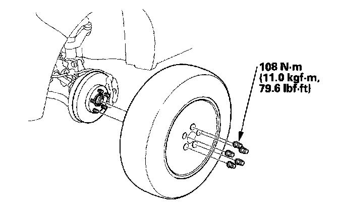 2. Remove the wheel cap, wheel nuts, and front wheel.