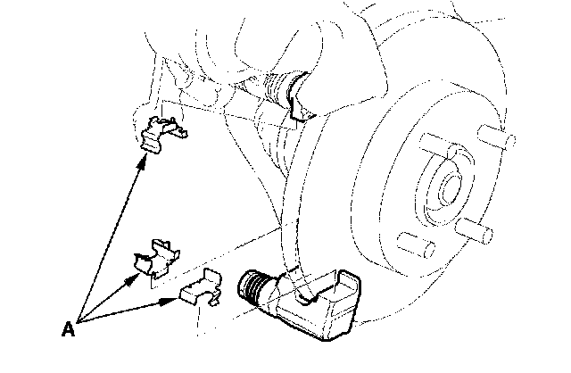 6. Install the pad retainers (A).