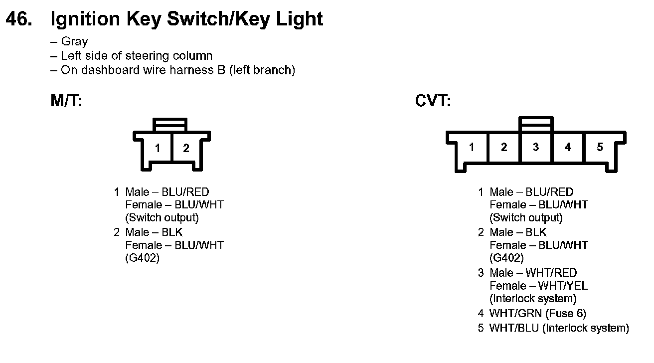 46. Ignition Key Switch/Key Light: