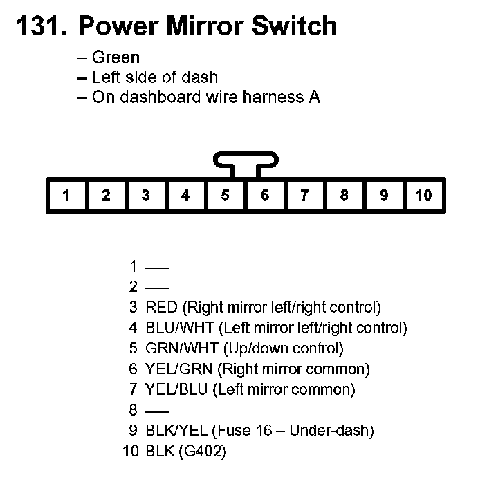 131. Power Mirror Switch: