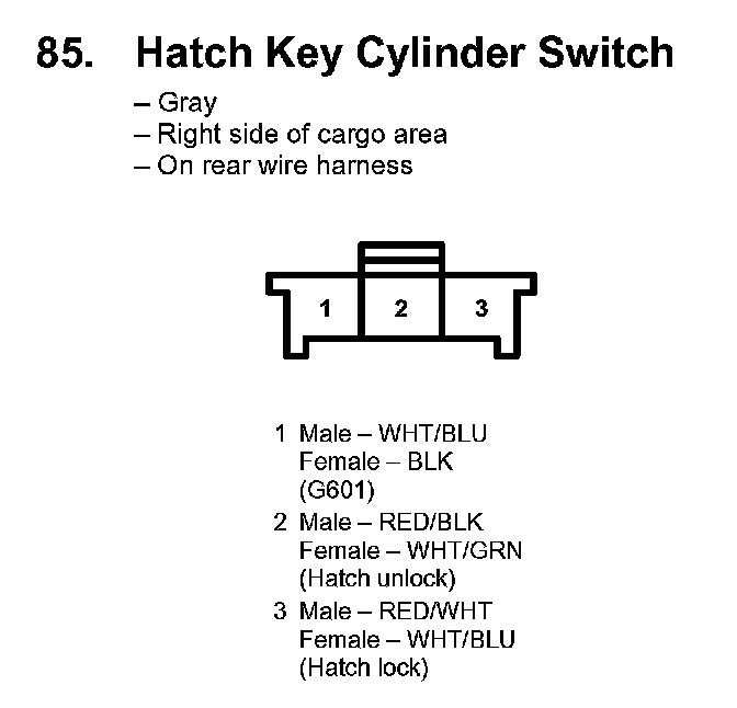 85. Hatch Key Cylinder Switch: