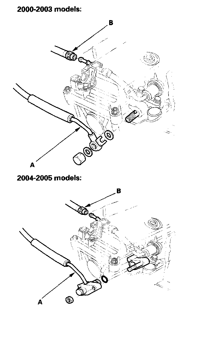 38. CVT model: Remove the ATF cooler hoses, then plug the ATF cooler hoses and lines.