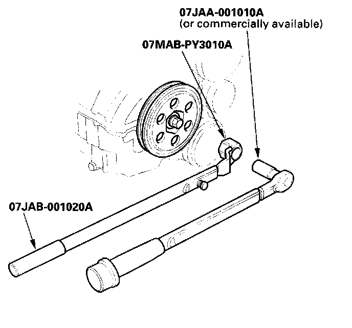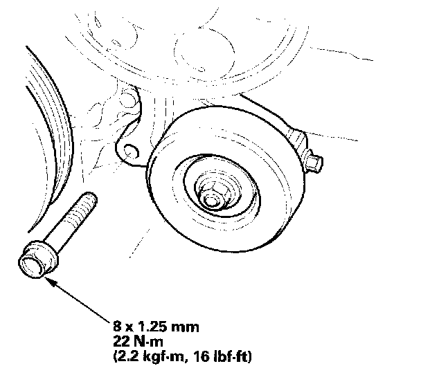 12. Install the crankshaft pulley, and tighten the bolt to 20 Nm (2.0 kgf-m, 14 ft. lbs.).
