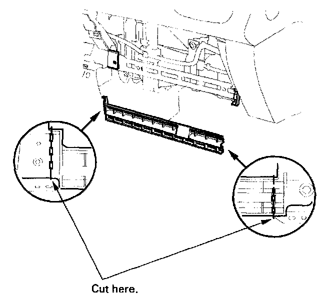 2. Cut the plastic cross brace in the glove box opening with diagonal cutters in the area shown, and discard it.