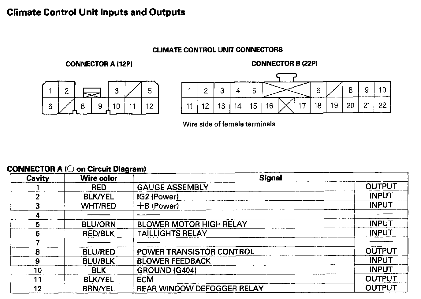 Climate Control Unit Inputs And Outputs