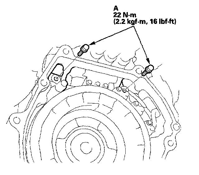 4. Install the guide pins (A), then remove the remaining three bolts (B).