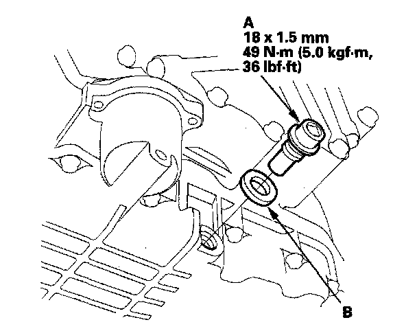 7. Refill transmission with the recommended fluid into the filler hole (A) to the upper mark on the dipstick. Always use genuine Honda ATF-Z1 Automatic Transmission Fluid (ATF). Using a non Honda ATF can affect shift quality.