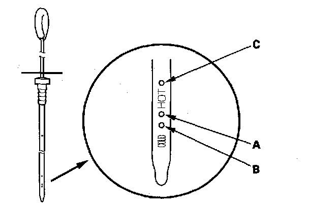12. Check that the fluid level is between the upper mark (C) and lower mark (A) on HOT level.