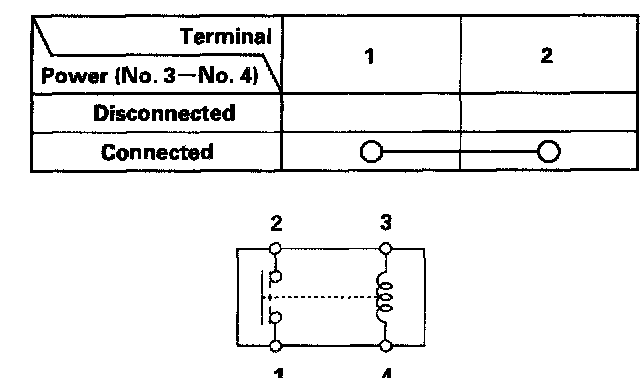 - There should be continuity between the No.1 and No.2 terminals when power and ground are connected to the No.3 and No.4 terminals.