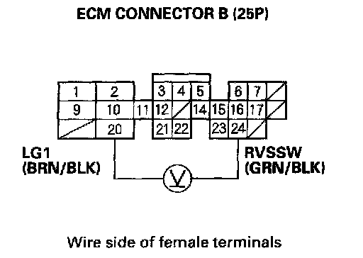 3. Measure voltage between ECM connector terminals B24 and B20.