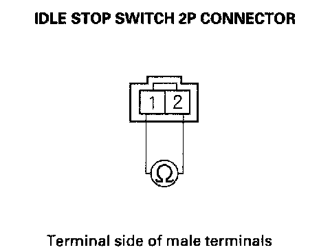 16. At the sensor side, check for continuity between idle stop switch 2P connector terminals No.1 and No.2.