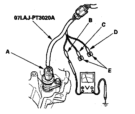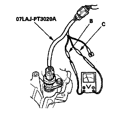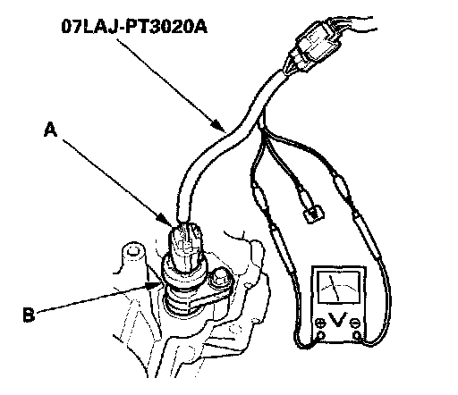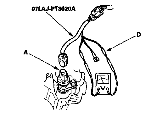 1. Disconnect the 3P connector from the VSS (vehicle speed sensor) (A).