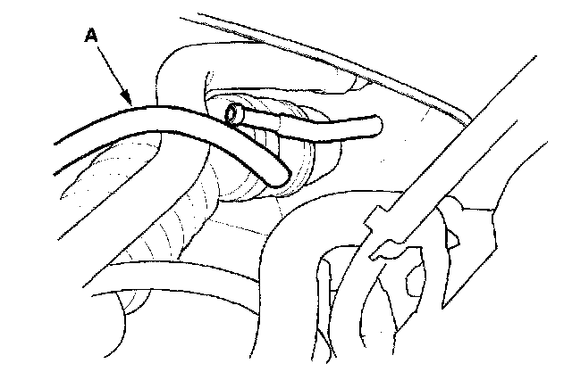 5. Apply vacuum to the fuel tank vapor recirculation tube (A).