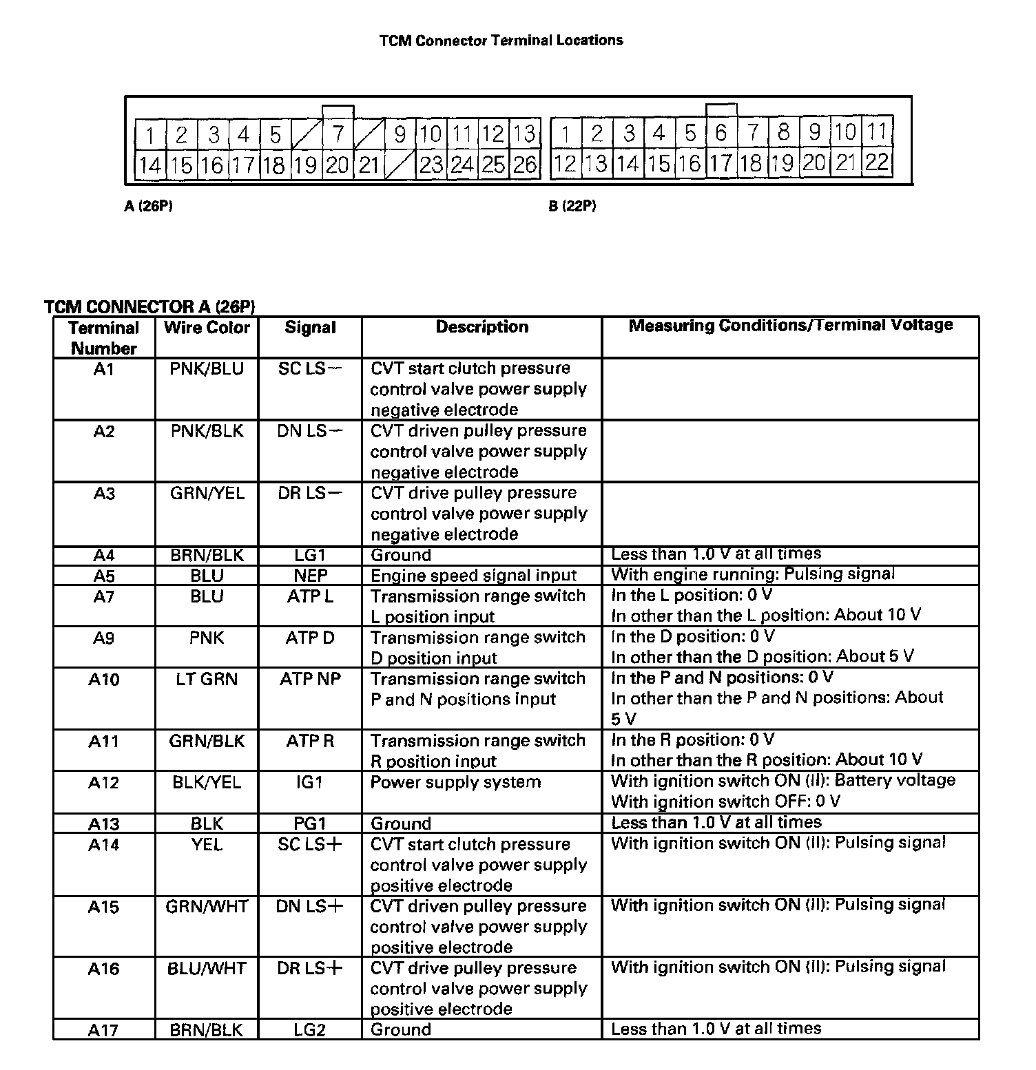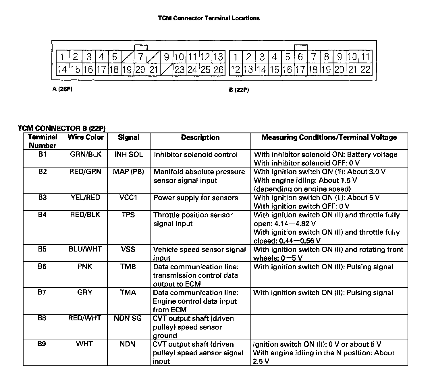 Pinout Values and Diagnostic Parameters