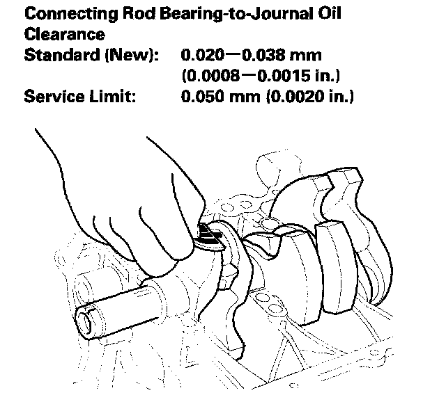 Connecting rod bearingReinstall the bearing half and cap, and torque the bolt to 9.8 Nm (1.0 kgf-m, 7.2 ft. lbs.) + 90°.